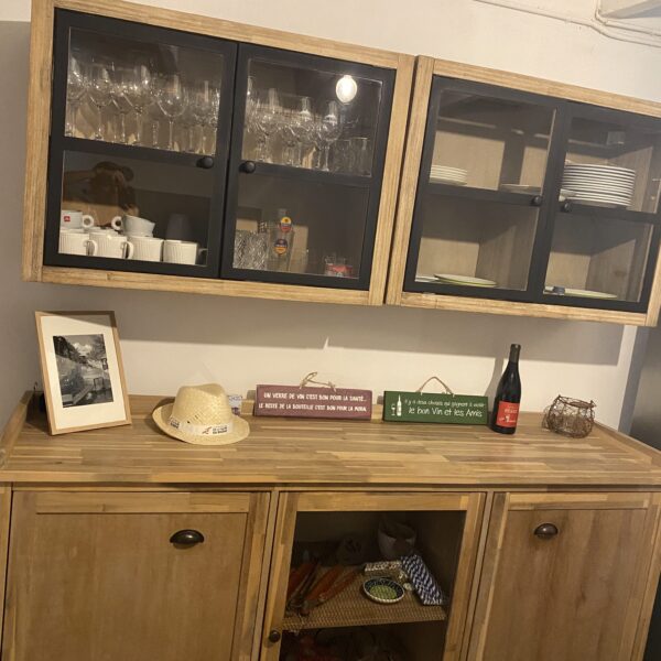 Beeld je in: Je loopt op de markt van Nyons (om er maar eentje te noemen). Overal waar je kijkt zie je lekkers. De lokale slager met het zuiverste vlees voor uw barbecue. De ‘fromagerie’ met geitenkaasjes uit de weides van de Luberon. Versgeplukte aubergines, courgettes en knalrode tomaten als smaakbommen. Vul nog aan met de kruidenboer, de oesterman,… en Om uiteraard de boulanger niet te vergeten die uw kraakverse baguette met plezier inpakt. Eenmaal thuis kan je je uitleven met al je ingrediënten in onze zeer ruime en volledig uitgeruste moderne keuken. Van het full-zone XL inductievuur, tot de ovens, … Bovendien kunnen uw gasten meegenieten aan het eiland van uw kookkunsten. De afwas verdwijnt uiteraard in de vaatwasser.