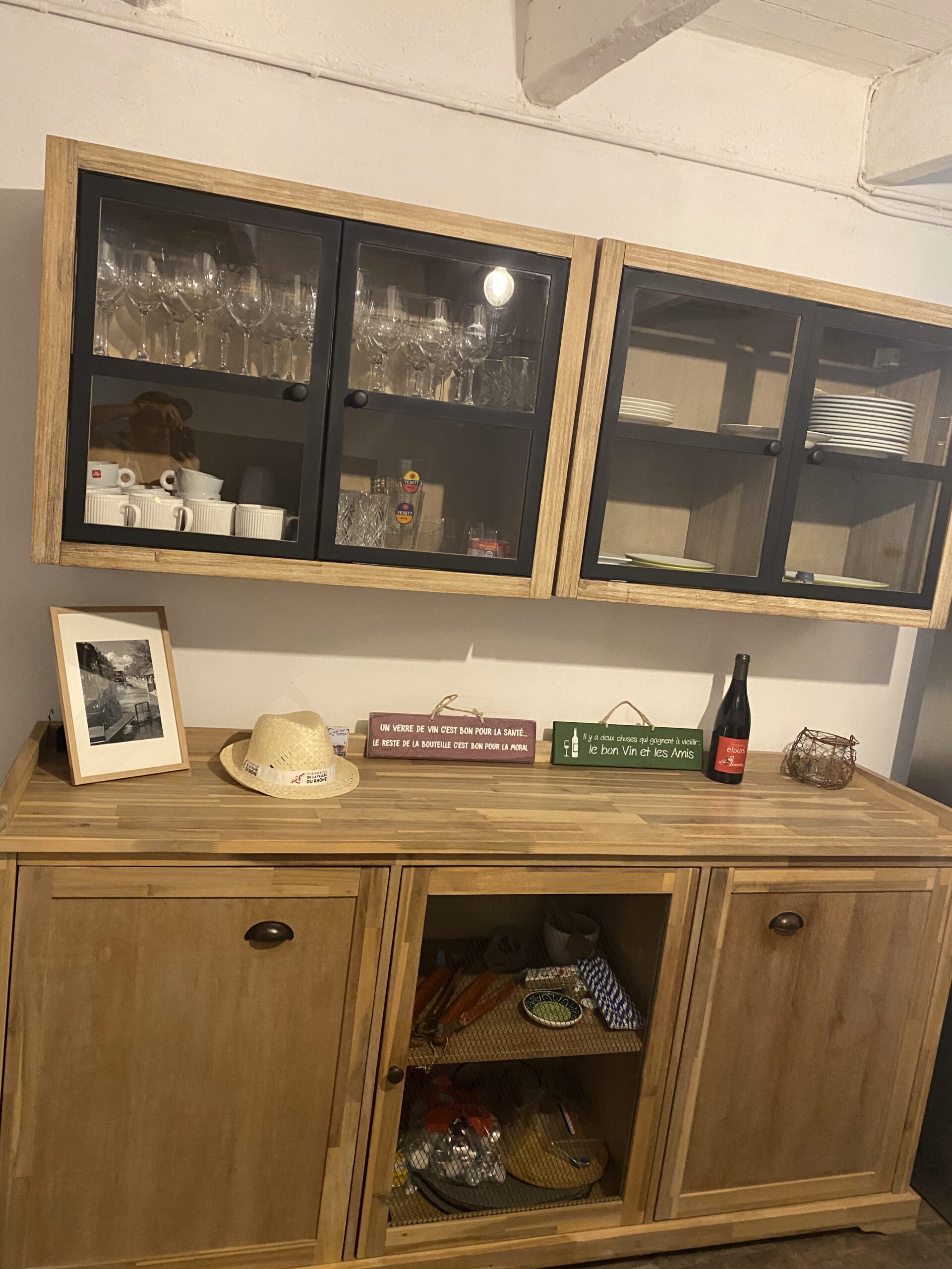 Authentieke materialen, hoogwaardige afwerking en oude elementen bepalen de sfeer in ons huis. Van natuurstenen vloer tot keukentoestellen van topmerken. De renovatie van dit oude wijnhuis werd tot in de puntjes verzorgd. Hierbij werd een delicaat evenwicht gevonden tussen behoud van de authentieke provençaalse sfeer en modern comfort.